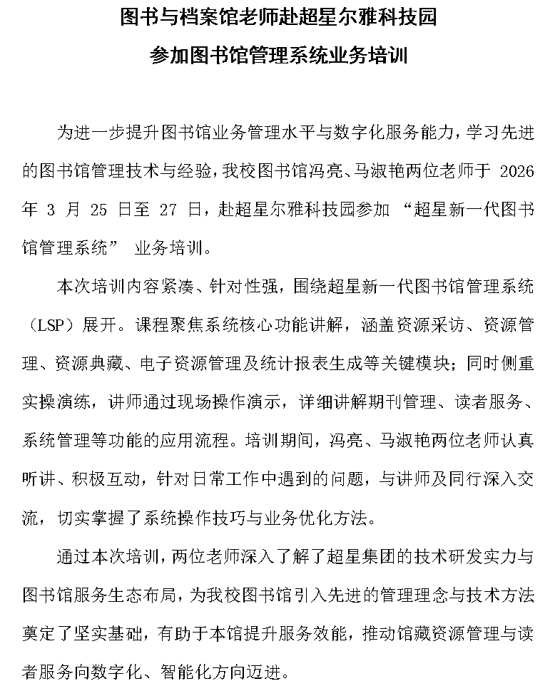 图书与档案馆老师赴超星尔雅科技园 参加图书馆管理系统业务培训