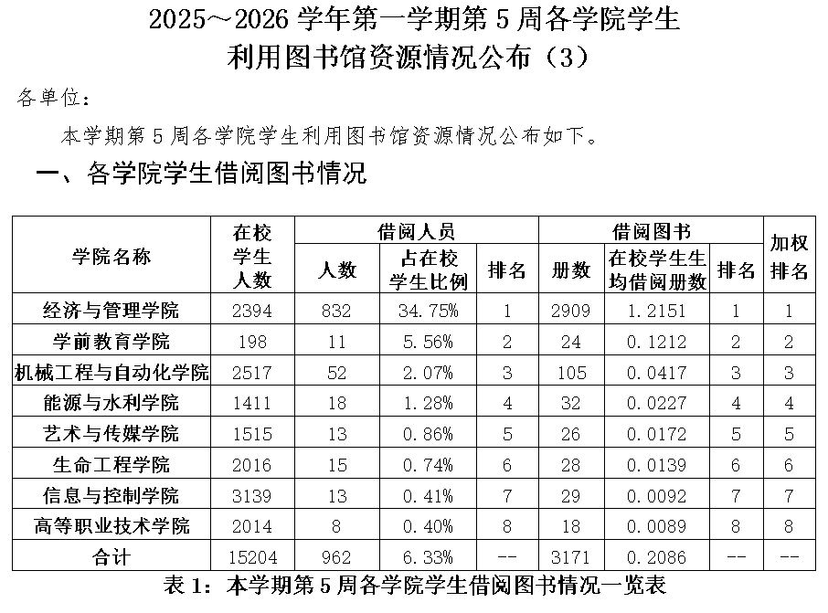 2025-2026学年第一学期第5周各学院学生利用图书馆资源情况公布