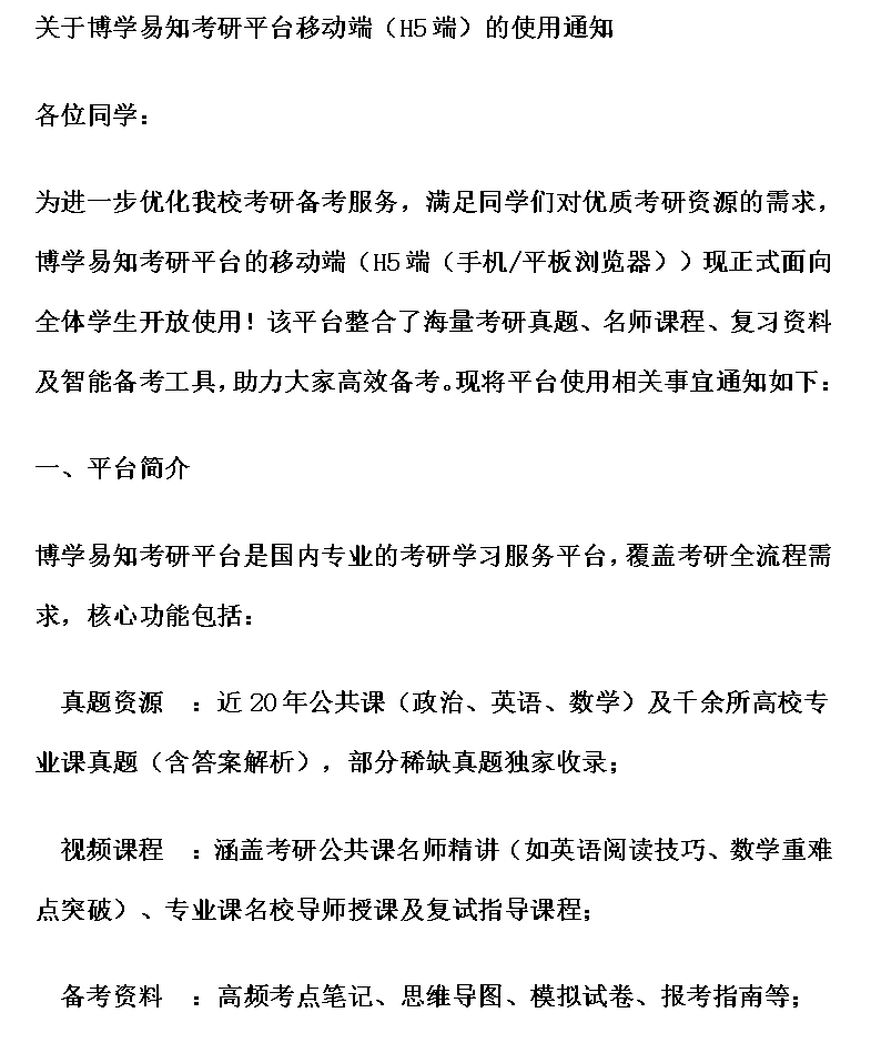 关于博学易知考研平台移动端(H5端)的使用通知