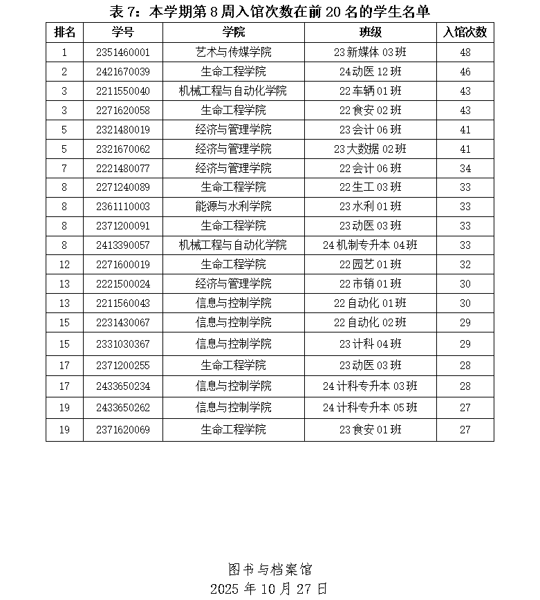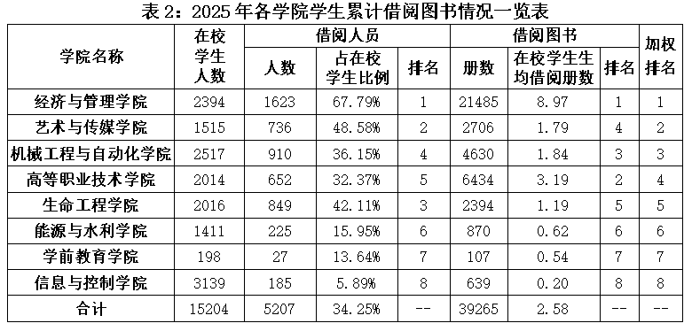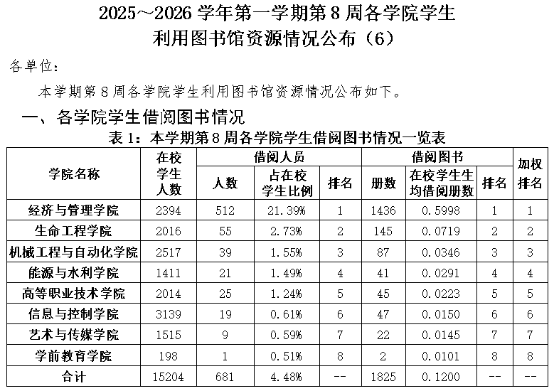 2025-2026学年第一学期第8周各学院学生利用图书馆资源情况公布