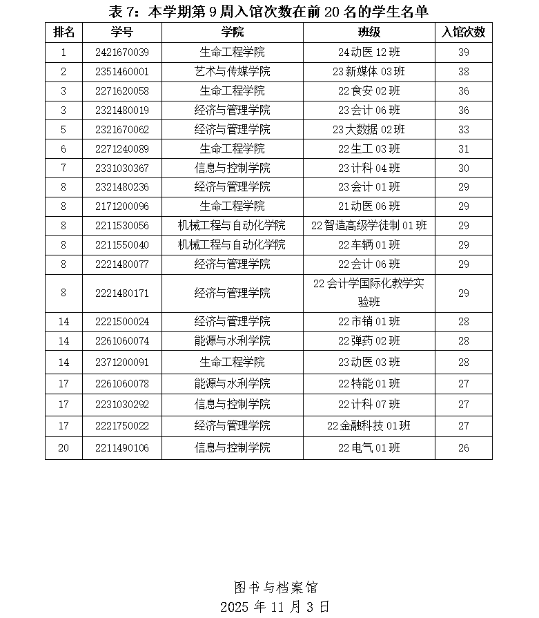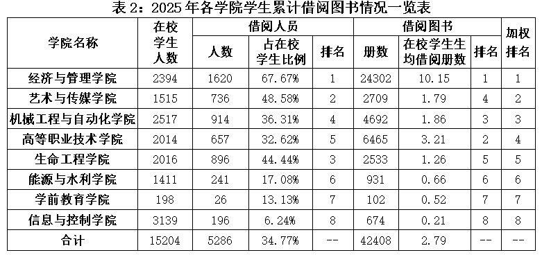 2025-2026学年第一学期第9周各学院学生利用图书馆资源情况公布