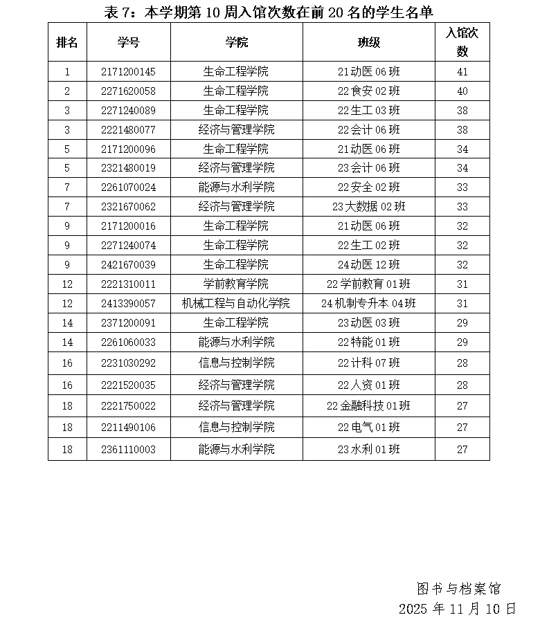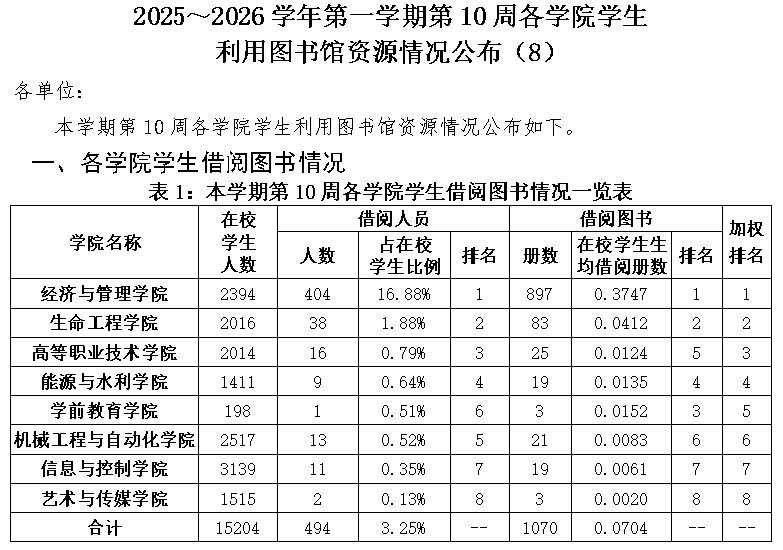2025-2026学年第一学期第10周各学院学生利用图书馆资源情况公布
