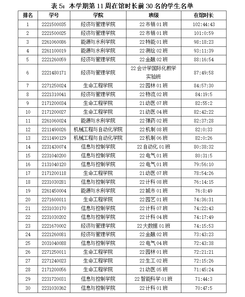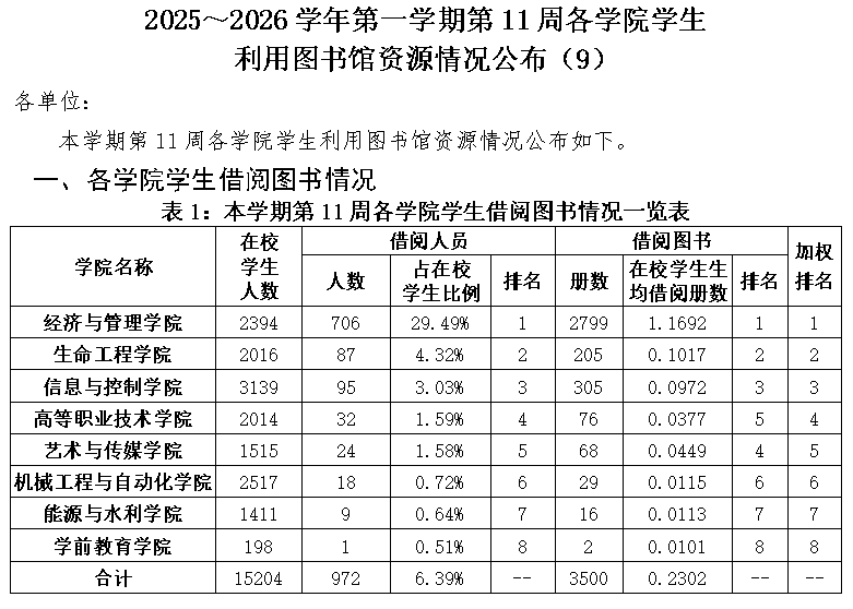 2025-2026学年第一学期第11周各学院学生利用图书馆资源情况公布