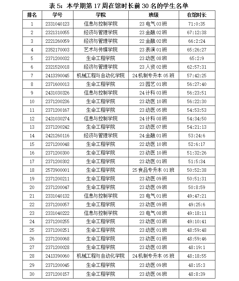2025-2026学年第一学期第17周各学院学生利用图书馆资源情况公布