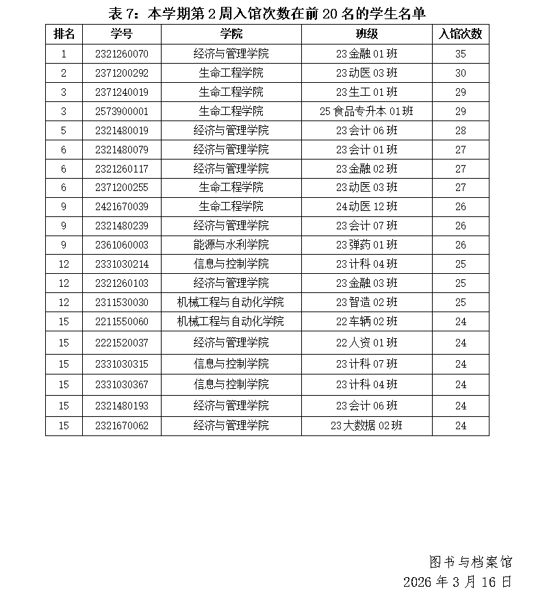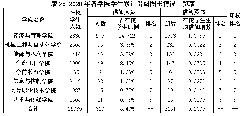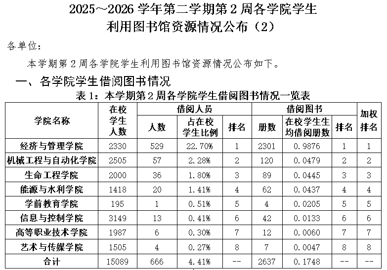 2025-2026学年第二学期第2周各学院学生利用图书馆资源情况公布