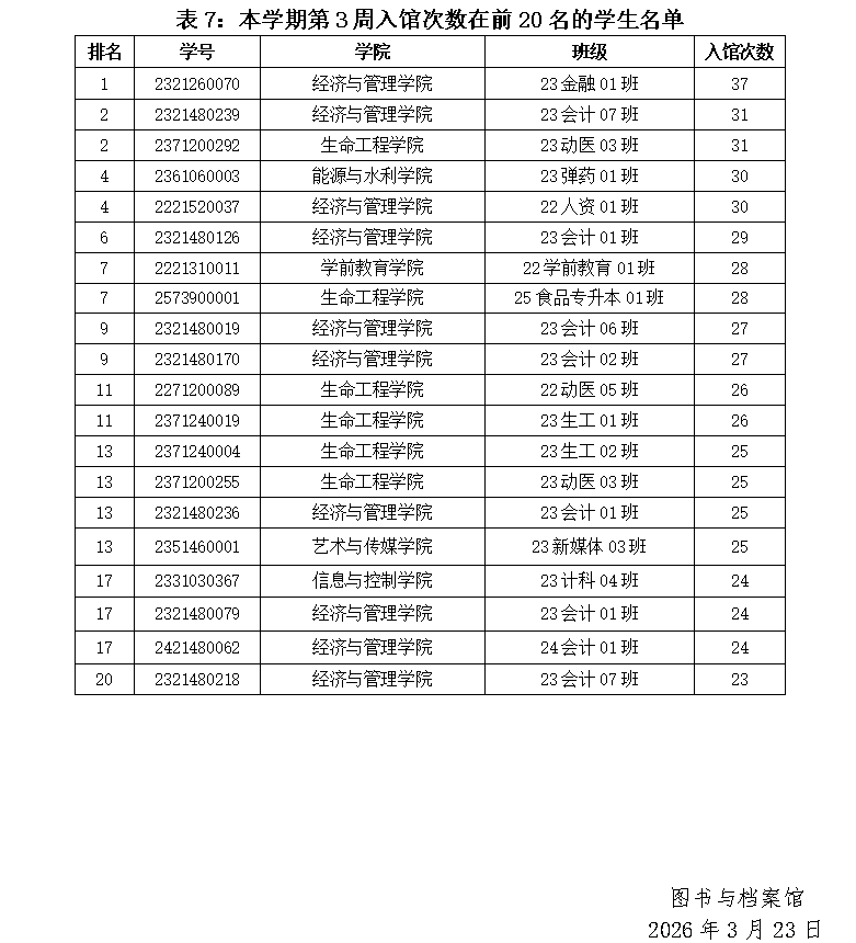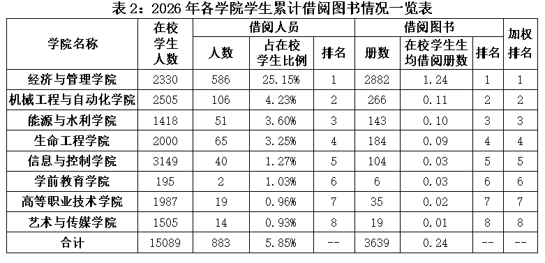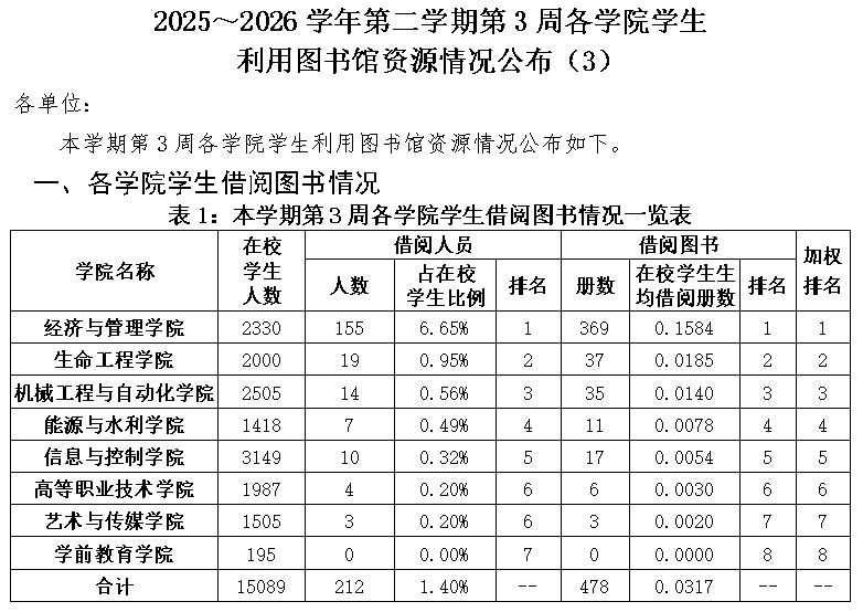 2025~2026学年第二学期第3周各学院学生利用图书馆资源情况公布