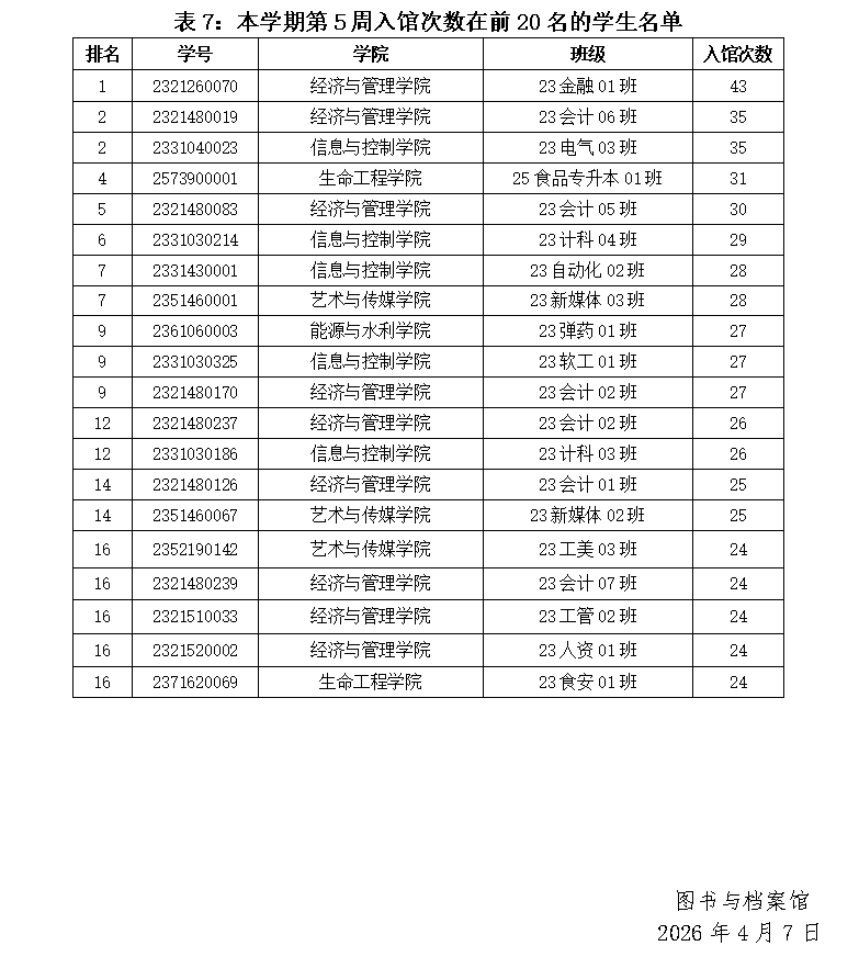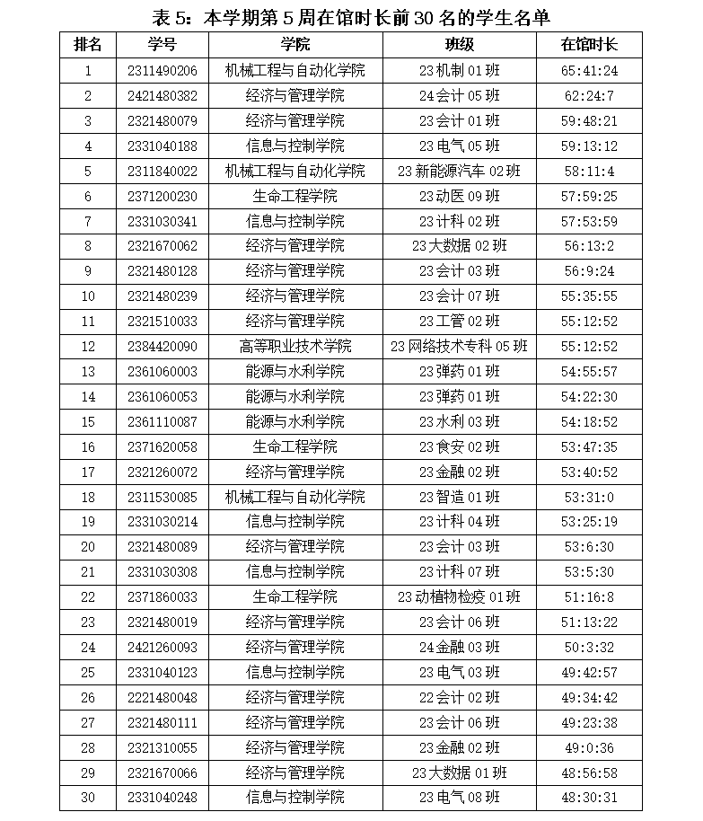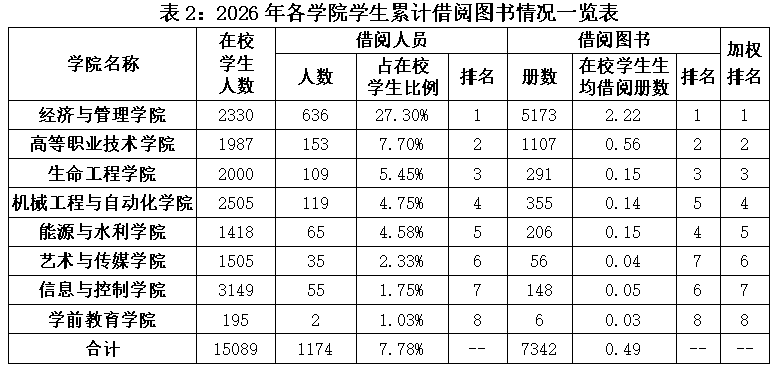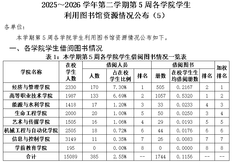 2025-2026学年第二学期第5周各学院学生利用图书馆资源情况公布